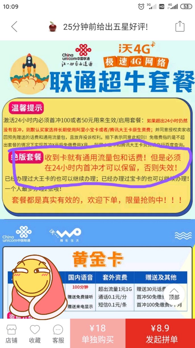 商家要求的充值100元肯定是想和联通分成,其实不充也有包!