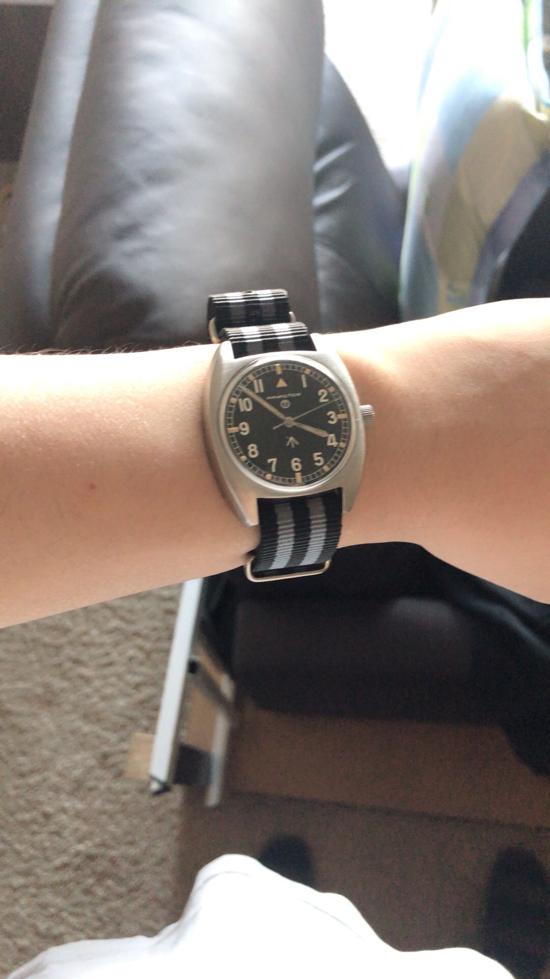 这个系列是英军在越战期间服役的表,w10代表陆军,表盘和背后的箭头代表英军。表盘上T代表氚的夜光,但是早就不亮了所以也不担心放射性。2176是序列号,75代表1975年。表是一整块金属,和其他表不同的是,打开这表只能从正面,过段时间也会去保养下。总得来说很开心,从芝加哥的一个收藏家那入手的。