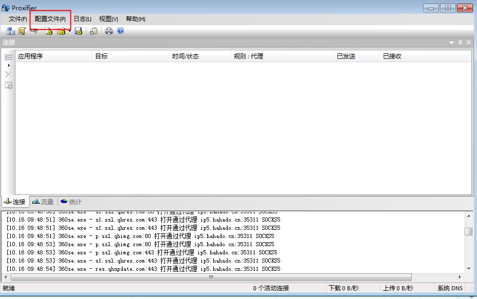 第一步打开桌面上的proxifier 点击配置文件