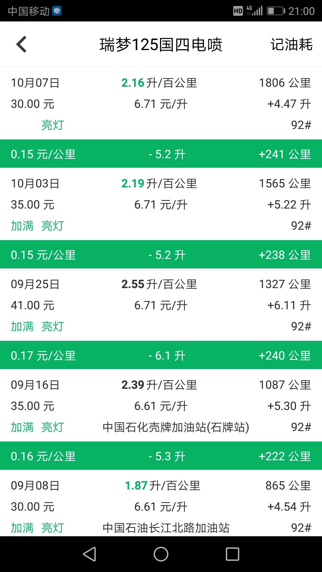 目前跑了一千二百多公里了,绝大多数城市道路。前两次加的油是从之前的车里抽出来的,油价随便写的。加满油一般50到60公里掉一格油,跑到二百五六油表亮,此时还剩1.4升左右,整箱油跑个三百不成问题,看来这车油耗还行吧~