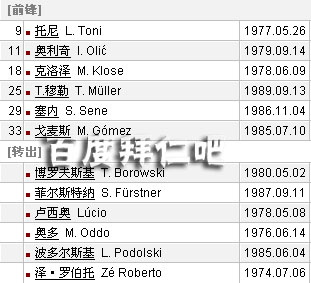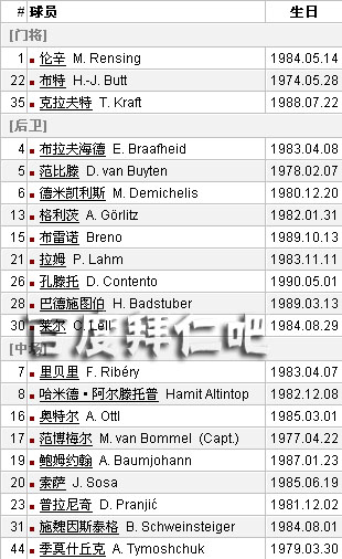 替补:卡恩,胡梅尔斯,菲斯特纳,皮萨罗,格利茨