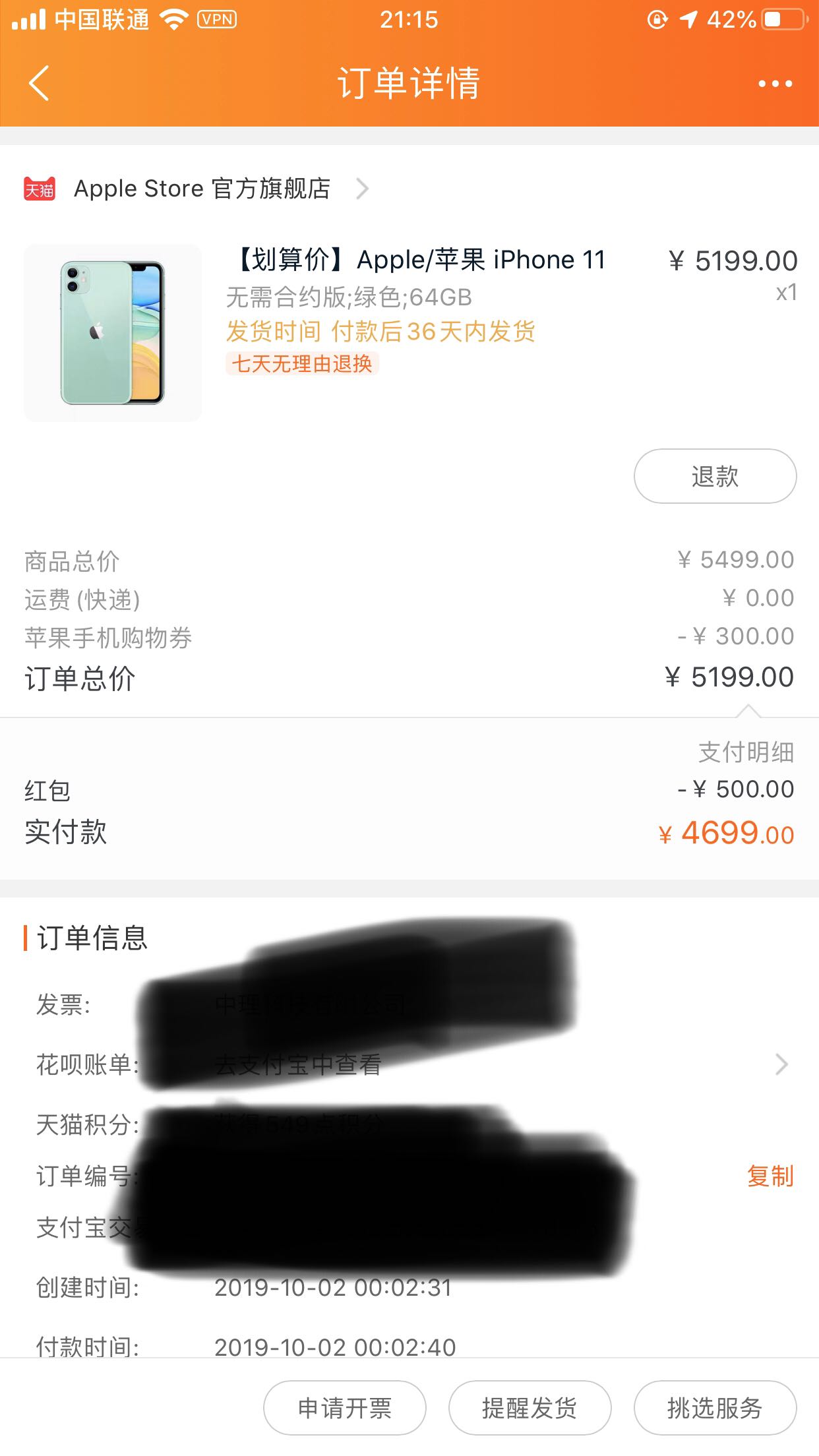 2号0点的64绿已经发货啦
