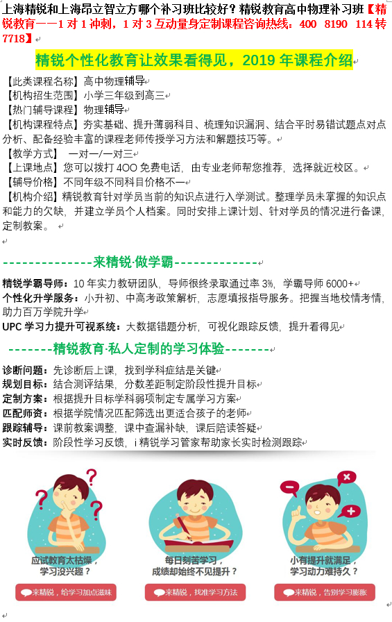 上海精锐和上海昂立智立方哪个补习班比较好?精锐教育高中物理补