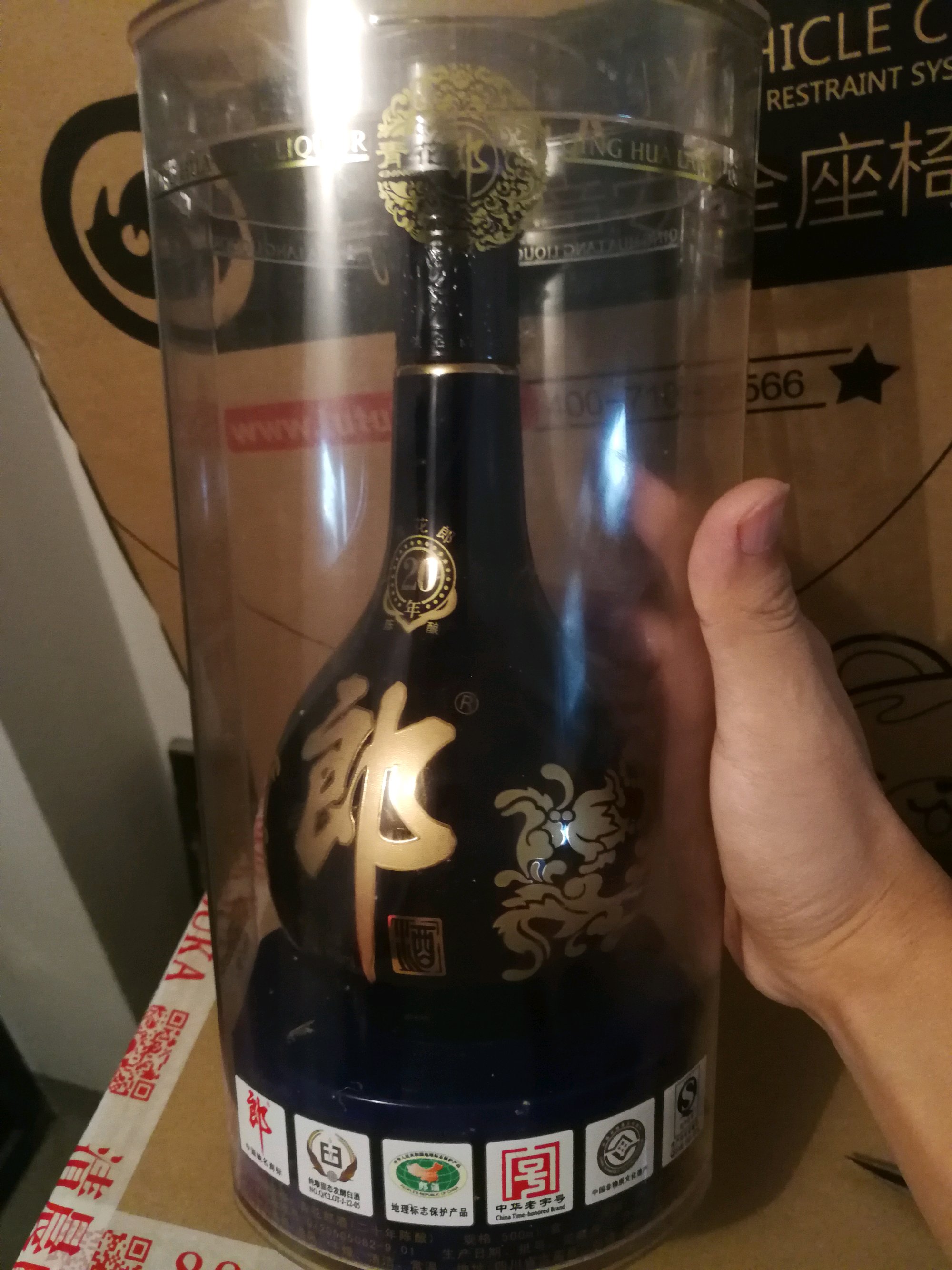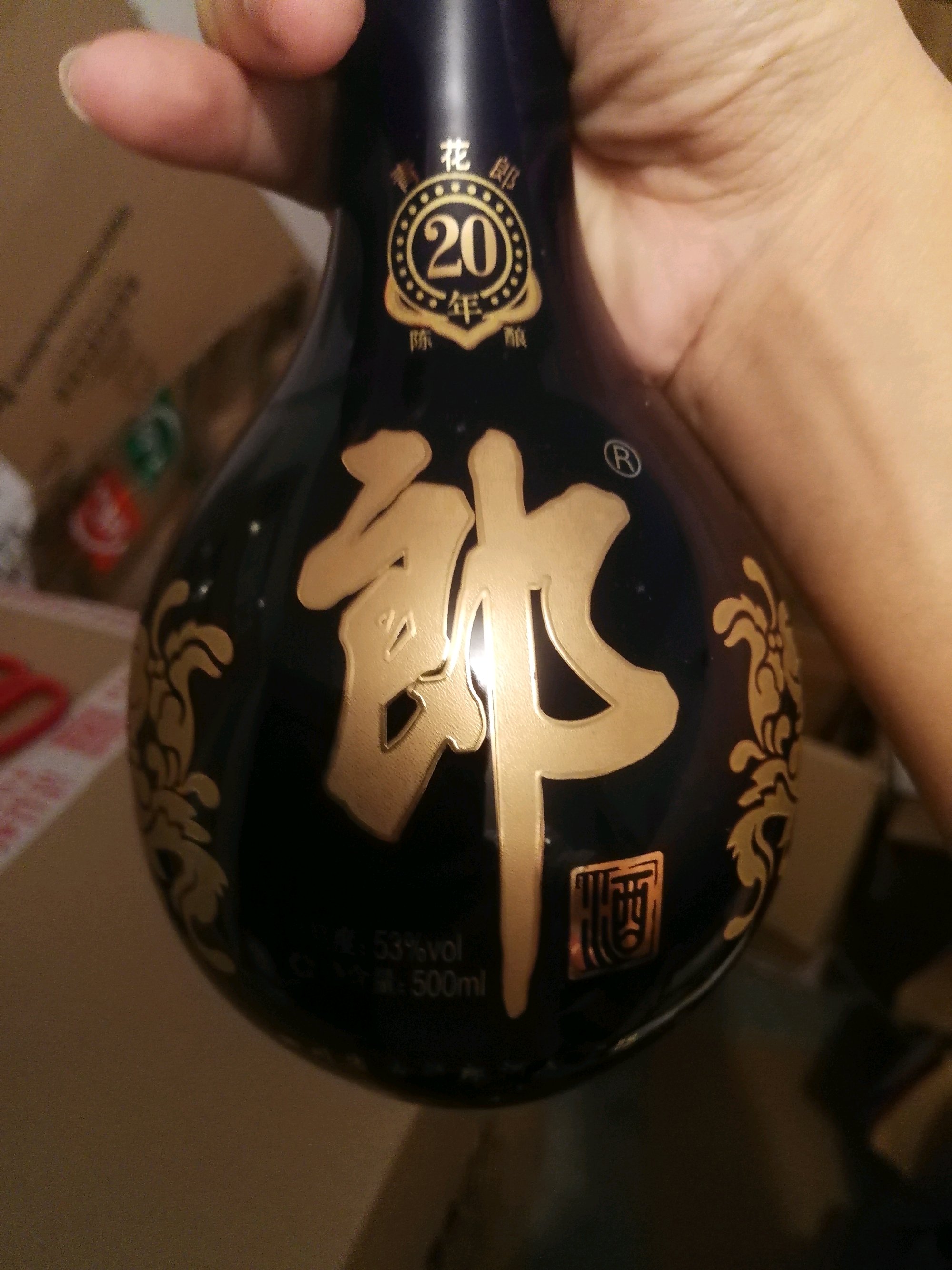 酱酒爱好者一枚!刚来贴吧,前段时间收了2瓶青花郎20年,麻烦酒友们鉴定一下,万分谢谢!下面是其中一瓶酒图片。