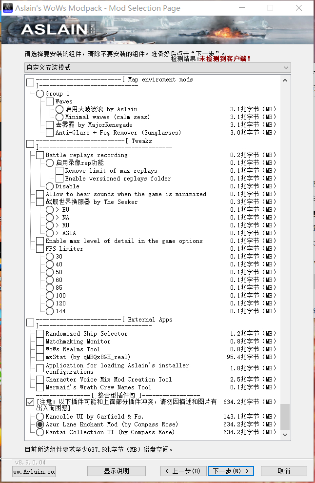 Aslain的插件包安装以后无法检测客户端,登陆以后也不显示内容