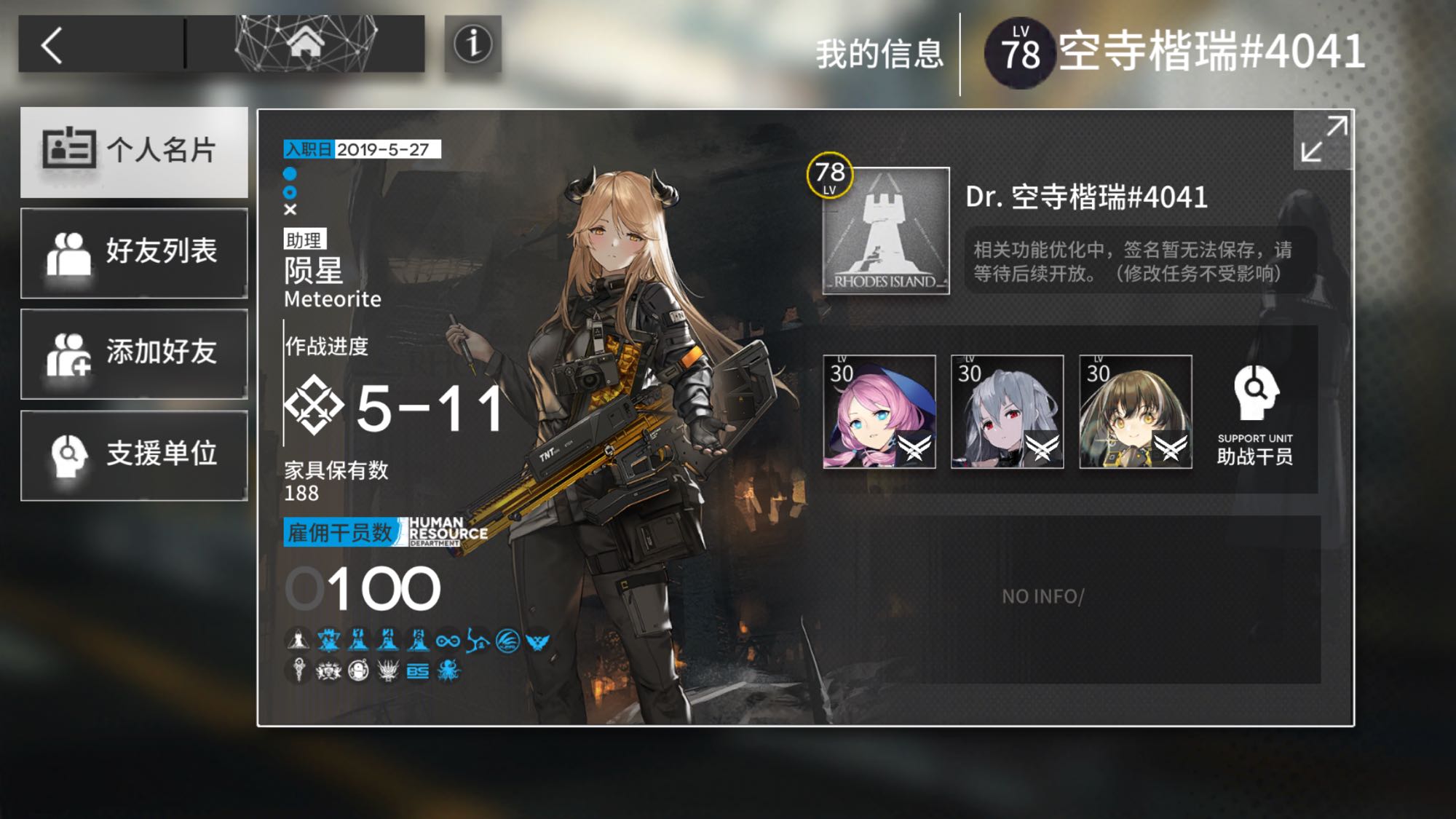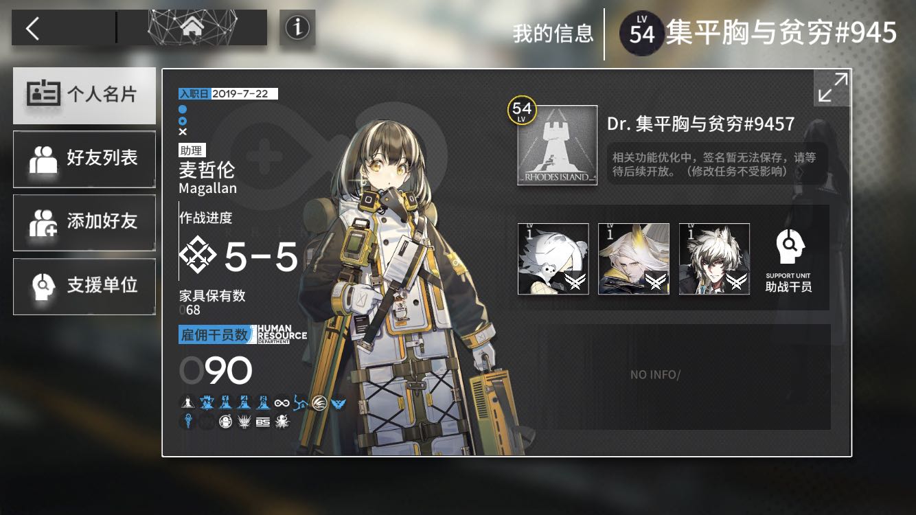 大家好呀!方舟最开始出的时候就玩了,但后来玩了不到一个月因为三次元很忙没时间就弃坑了😂最近重新回坑,这次打算长期玩,希望各位活跃的小伙伴可以互加好友送线索开party~我刚刚集满,party刚开~欢迎大家来蹭信用点~