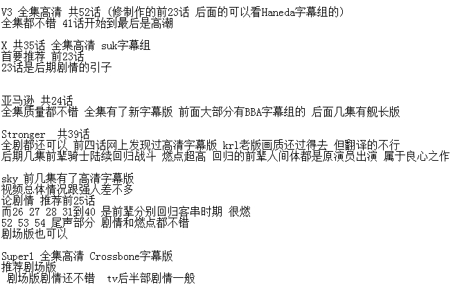 目前V3 X 亚马逊 Super1都有了全集高清字幕版 翻译的比老字幕视频准确很多