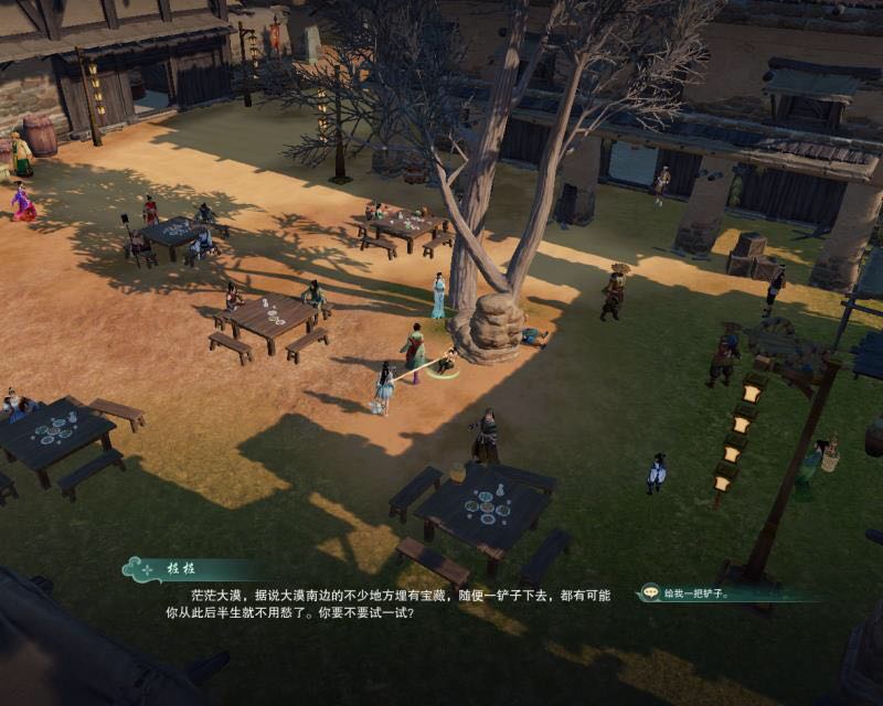 首先到龙门客栈去树下找NPC桩桩,问他要一把铲子,然后往南戈壁那边飞(就客栈飞上山头就行了)