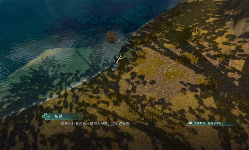 飞到下图位置,找河边的NPC杨悦对话,