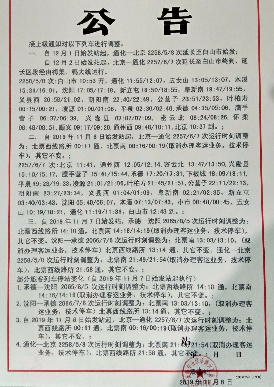不不不11月9日起停止办客。火车站公告