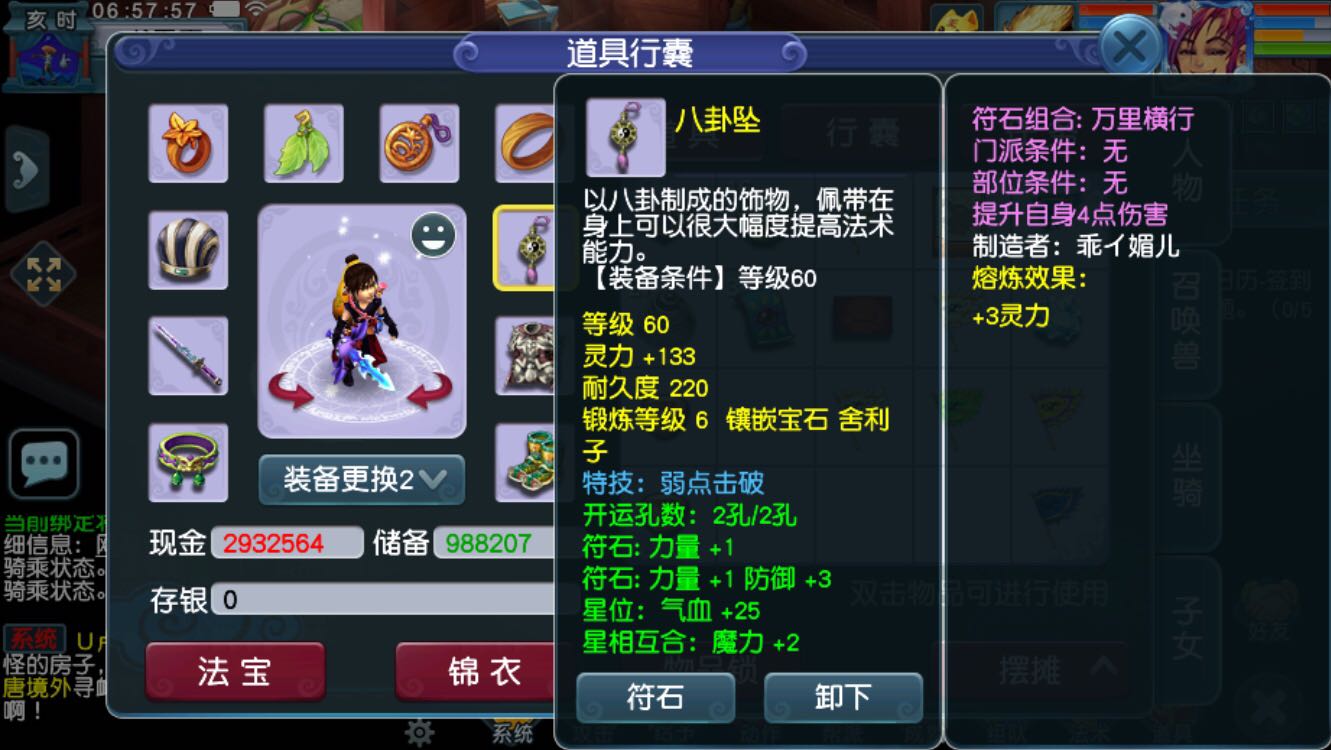 换成双伤害的,预算不够先换耳饰,腰带换480血以上的,头买10段的, 50 60的都行,衣服换成220以上防御的,把潜能果吃满,强壮刷满,坐骑刷个1.29以上 吃到2.2,一个力的一个耐的,最后弄神速,因为抗性不够速度太快老挨打吃不消,宝宝弄带高连高神2500血以上 400防御的物理宝宝。全部弄完就可以跑机缘了,我是15年从新区0基础玩起的 现在卡了四年69单开了,这样配装性价比最高