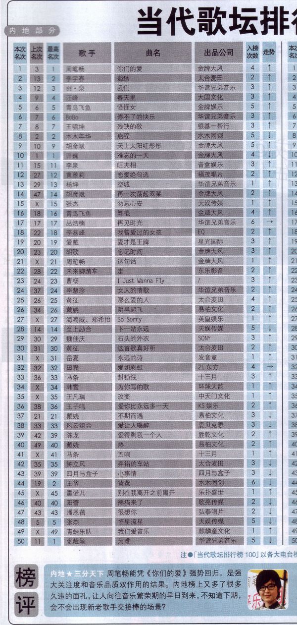 当代歌坛排行榜100,《你们的爱》第一