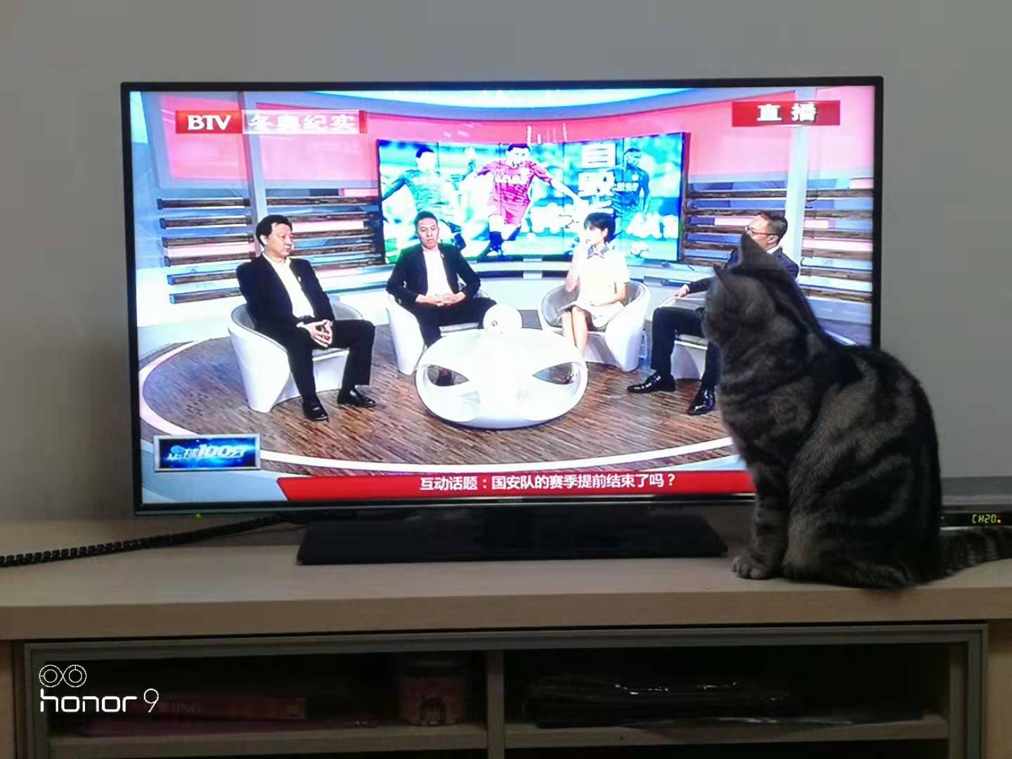 喵咪听得特别认真,为国安着急啊!