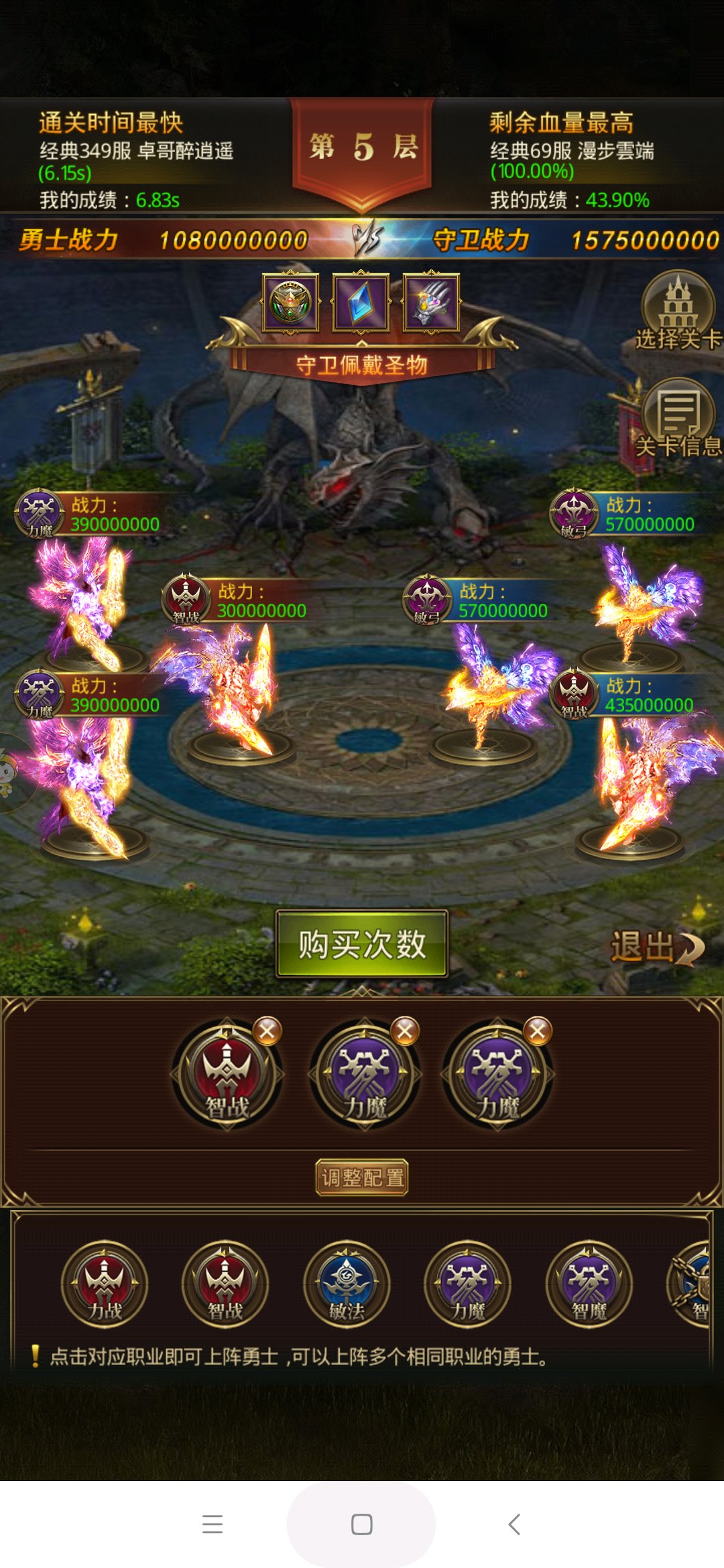 没大师,勋章14层,已经满buff,死活过不去,守卫双力战一智战,圣物是克制战士、空间原石和响指,求大神来个靠谱的阵容、技能宏和勋章搭配
