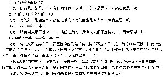 所谓换位规则就是将直言判断中主项和谓项调换位置,但是句子意思不发生改变。