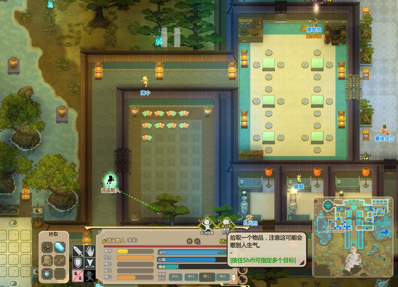 1,就是等,等下面房间里的元神走人,然后厨房里只有1个下棋的或者没人,如果站在这个位置是白眼那就可以下手了,为了保险起见我都是1次拿1个