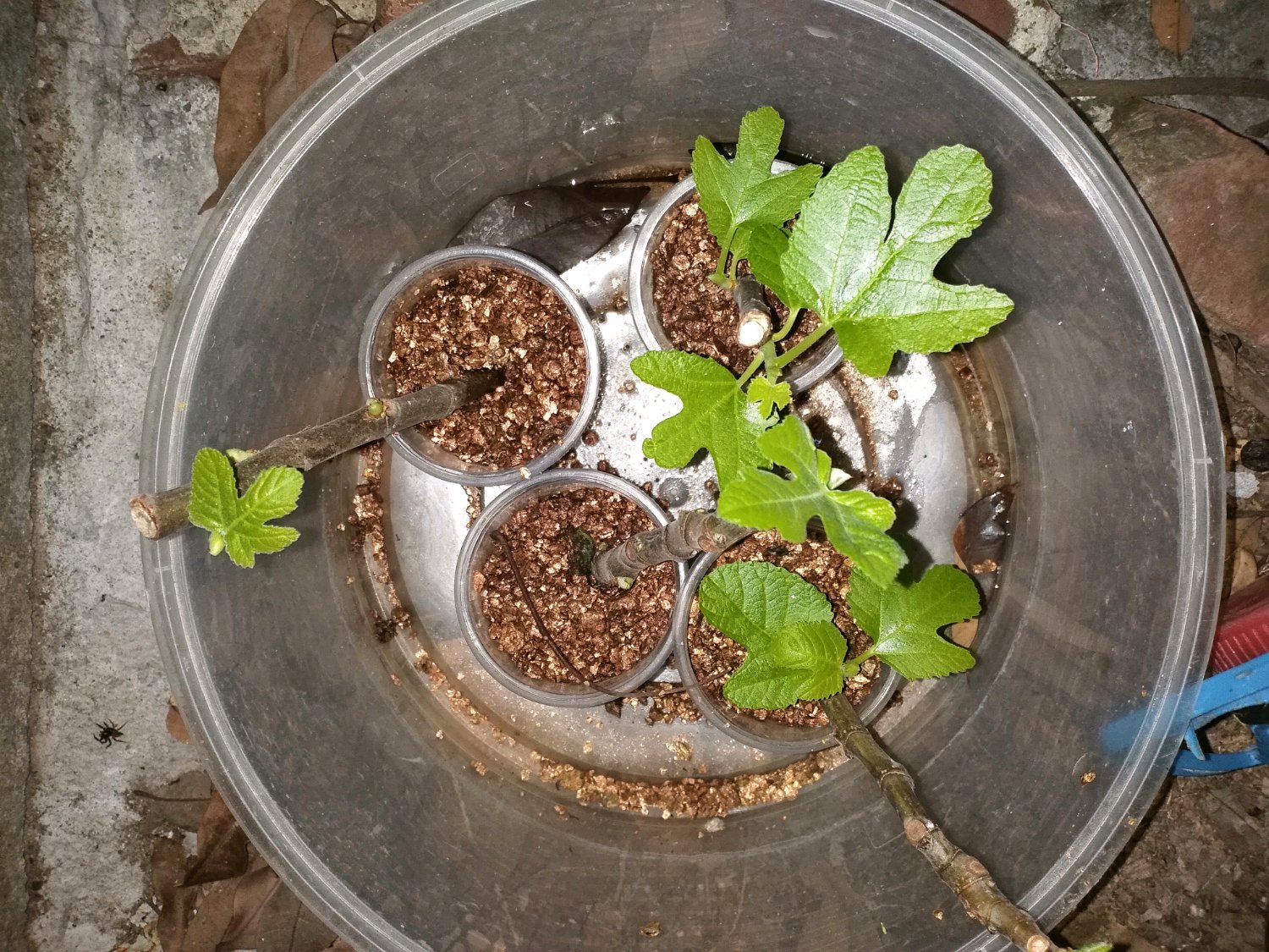 扦插的无花果长叶了,可似乎还没看到大白腿。希望能长起来。