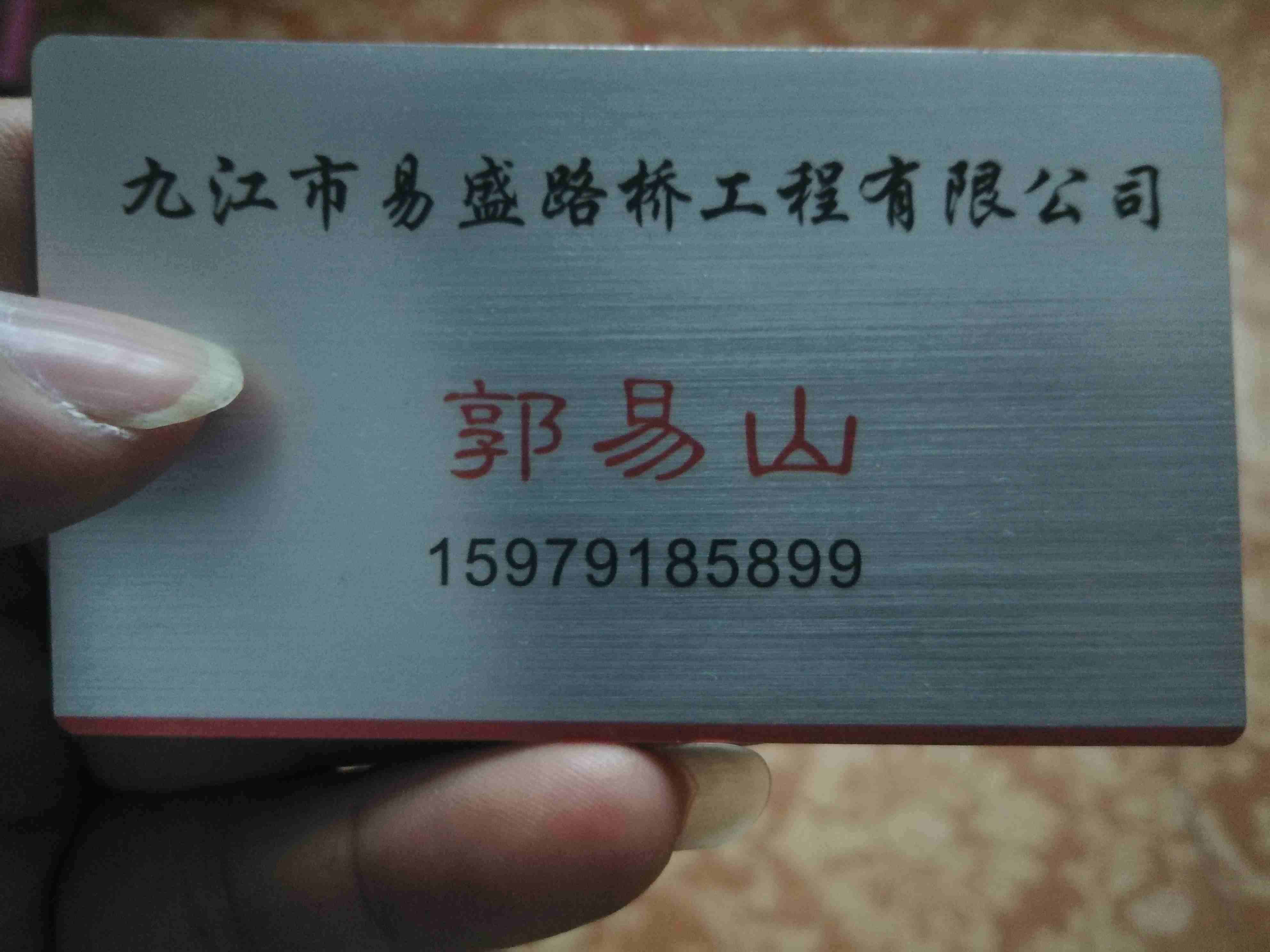 尊敬的领导您好!我是郭易山。是专做高速公路路面、路基排水施工的。我公司近年来在江苏省、江西省、河南省、湖南省、山西省、贵州省做了大量高速公路路面排水即顶管工程,在江苏沪宁高速HN-A1标、HN-A2标、HN-D1标、D2标、D3标、HN-E1标、E2标、HN-F1标、F2标施工,在苏通大桥连接线A4标、A6标、B3标施工,在江西省沪昆高速、昌九高速、昌樟高速、九景高速、梨温高速、昌泰高速、抚吉高速、德上高速、永武高速、武吉高速、昌栗高速施工,在河南省京港澳高速施工,在山西省五保高速施工,在贵州省兰海高速、铜大高速、思剑高速施工,在湖南省娄怀高速施工,均有合同保留。由于我们的施工工艺是用岩石钻机成孔的,对路基没有损害,排水效果良好,受到了各地业主的一致好评。最后祝领导财源广进!平步青云!!步步高升!!!郭易山敬上