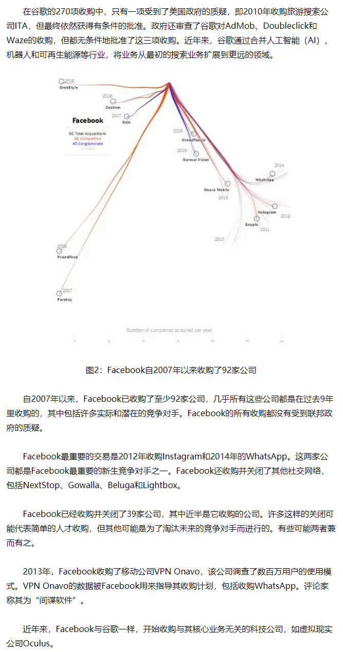 过去的一二十年间,谷歌、脸谱、亚马逊等国外公司在全球疯狂收购各行各业尖端公司,