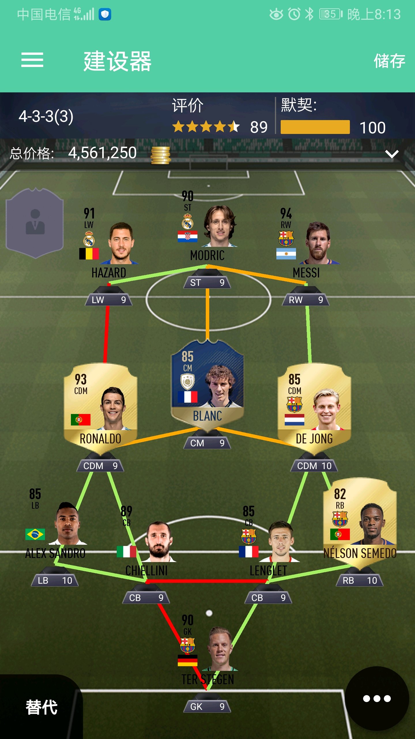 求化学老师,请问c罗梅西阿扎尔怎么混,其他位置都可以动。