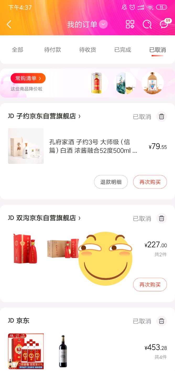 想了想家里存的各类口粮酒太多,取消了