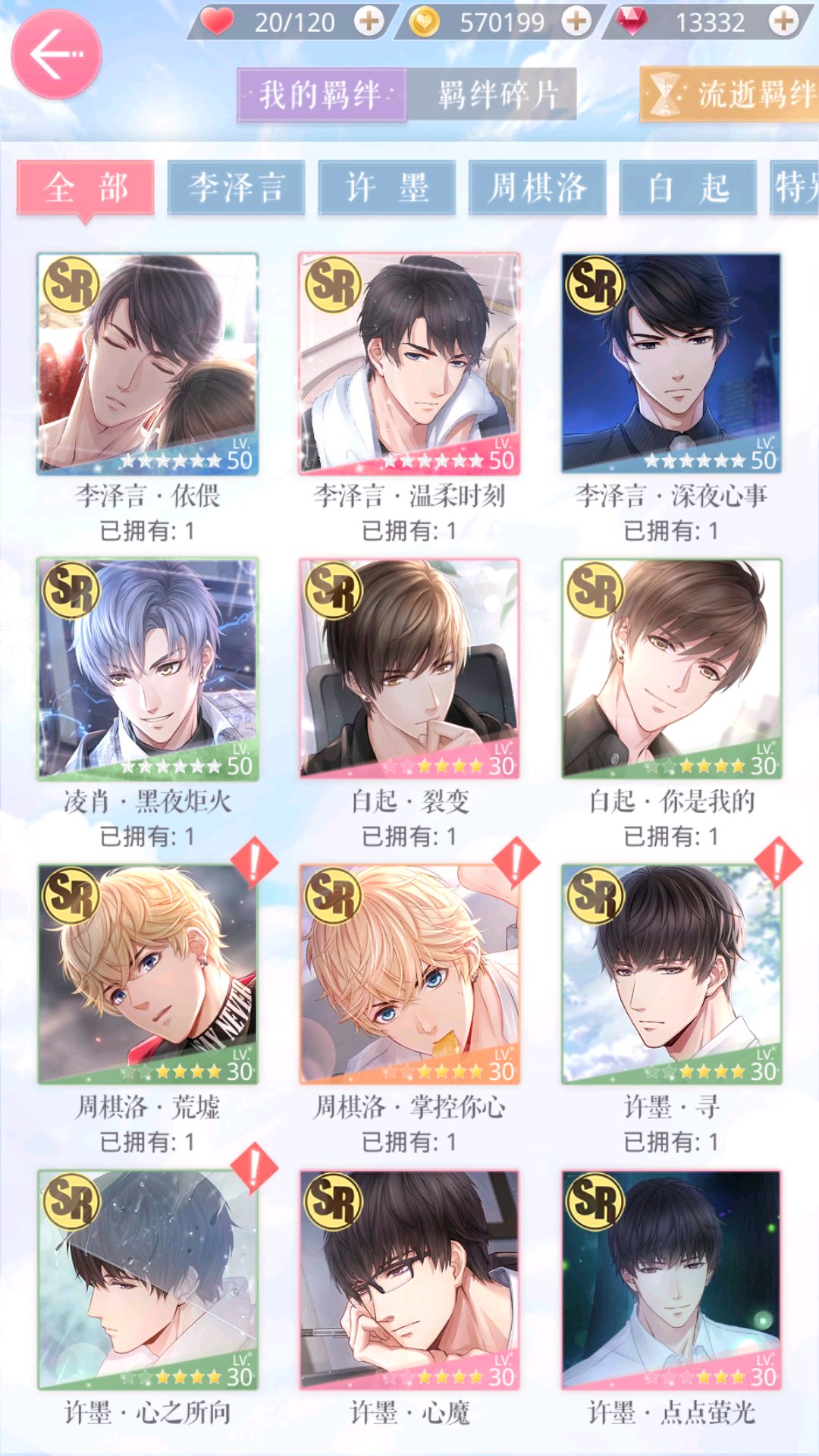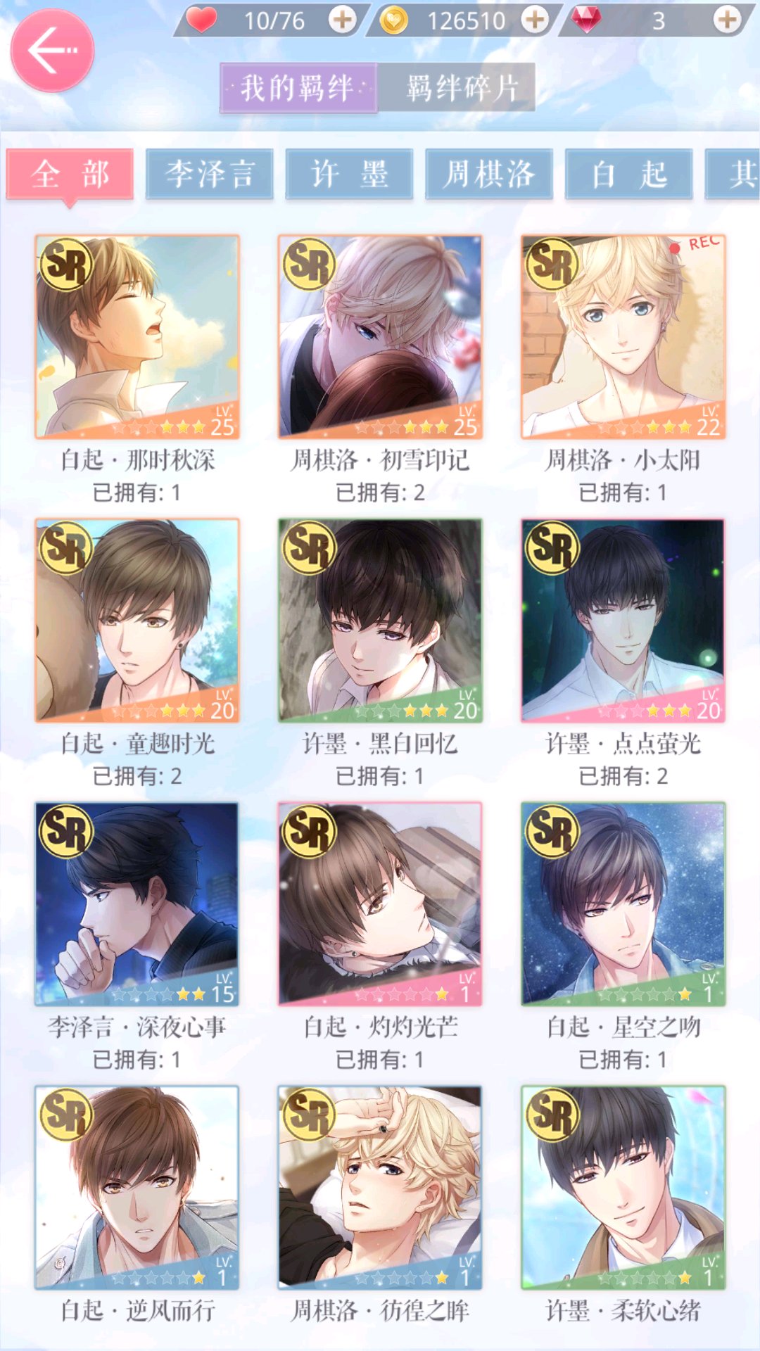 目标是四民国(sp兔崽子千万别来找我),置顶粉,sr橙粉,特别羁绊。一个号三种享受。