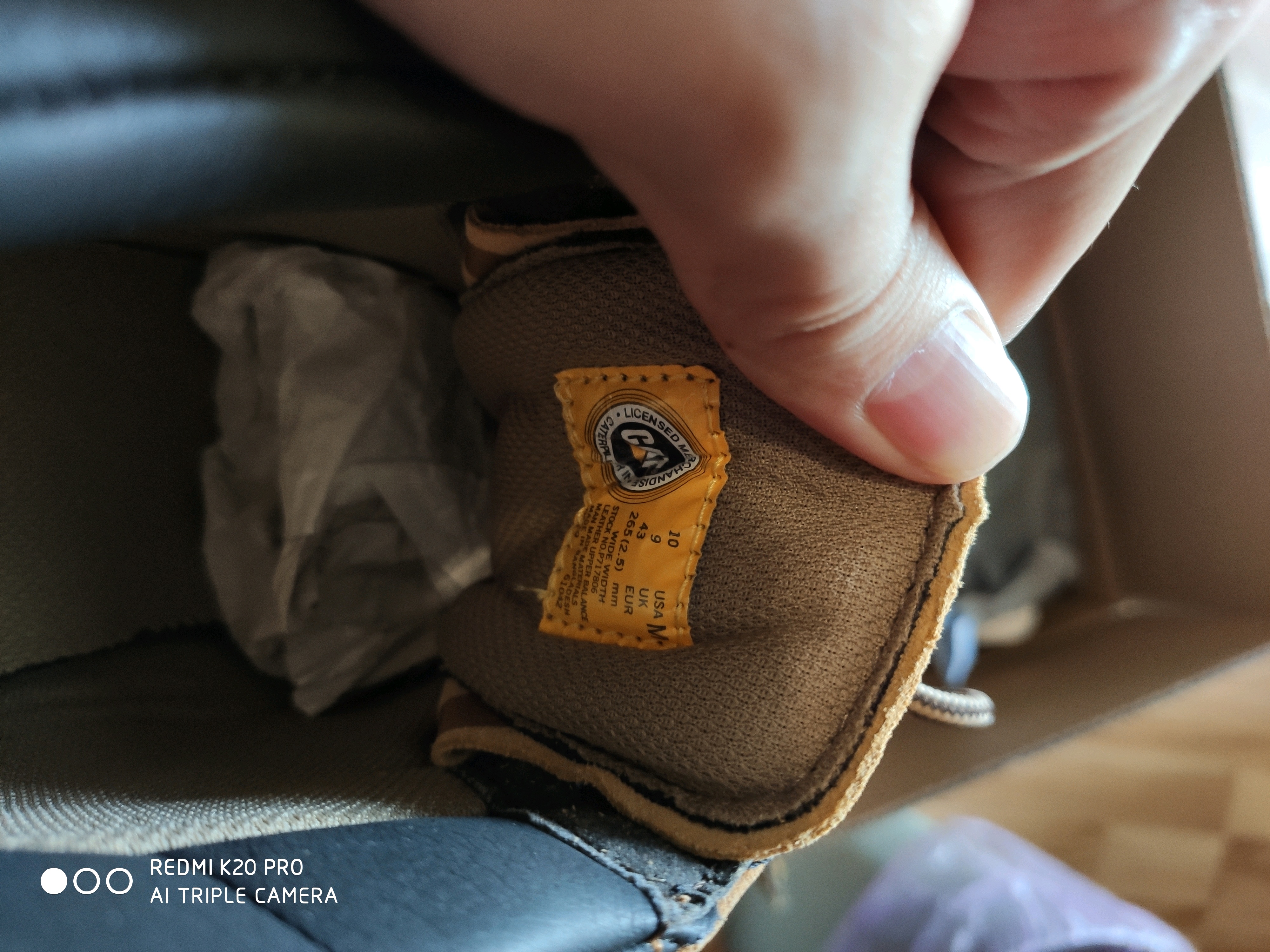 可能你接受程度高吧,我专柜几乎原价买的,有点受不了。有一张图是对比,左脚的鞋,封条确实没封紧,我去专柜换了一只鞋,就是正常的。两双CAT鞋子的鞋舌上有鞋孔金属部分的那种压久了得绿色印子,怎么都弄不掉