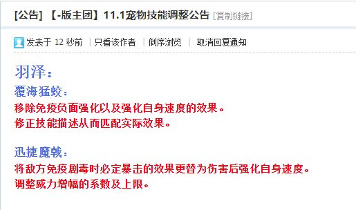 2019年11月1日感觉羽泽被削了,覆海猛蛟没有免疫负面强化了,而且不加移速了