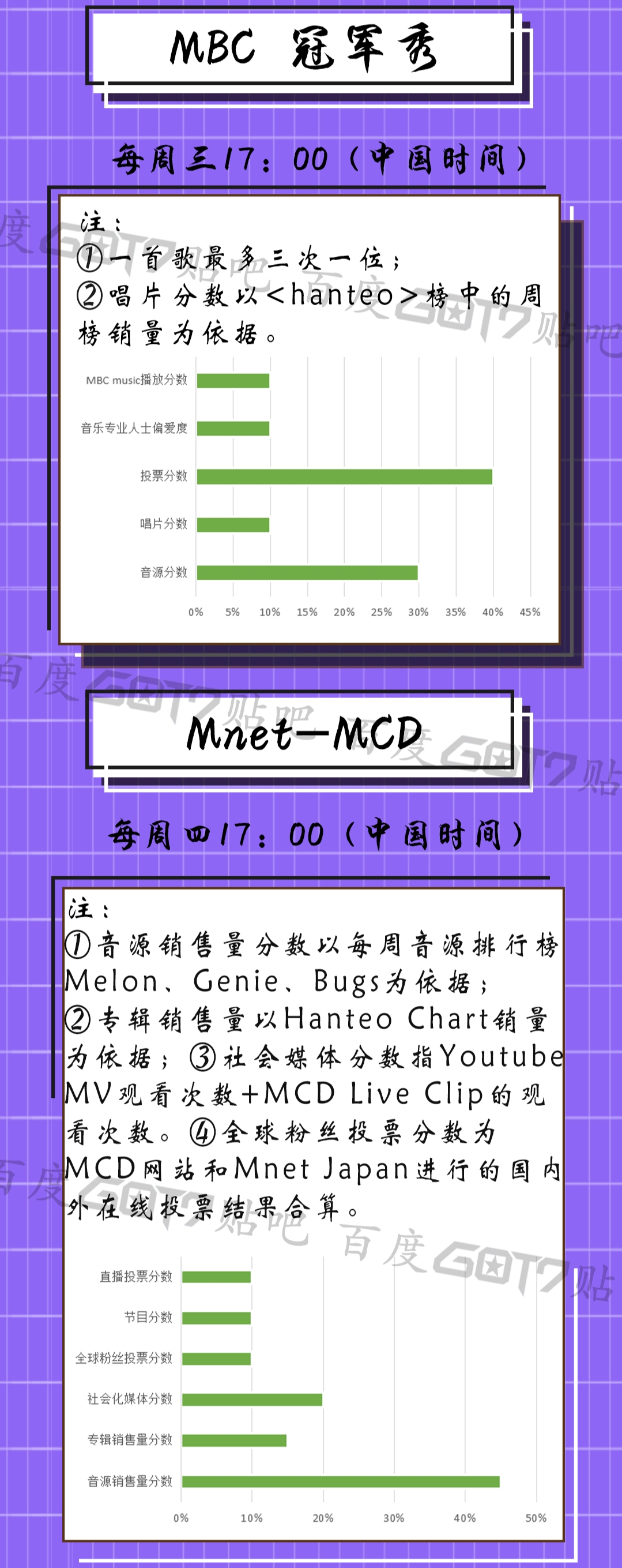 🔸各大打歌节目的计分规则及注意事项如下👇