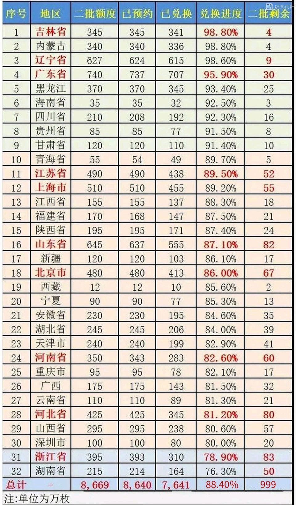 那么二批各省的兑换情况如何呢?一起来看看分析吧~