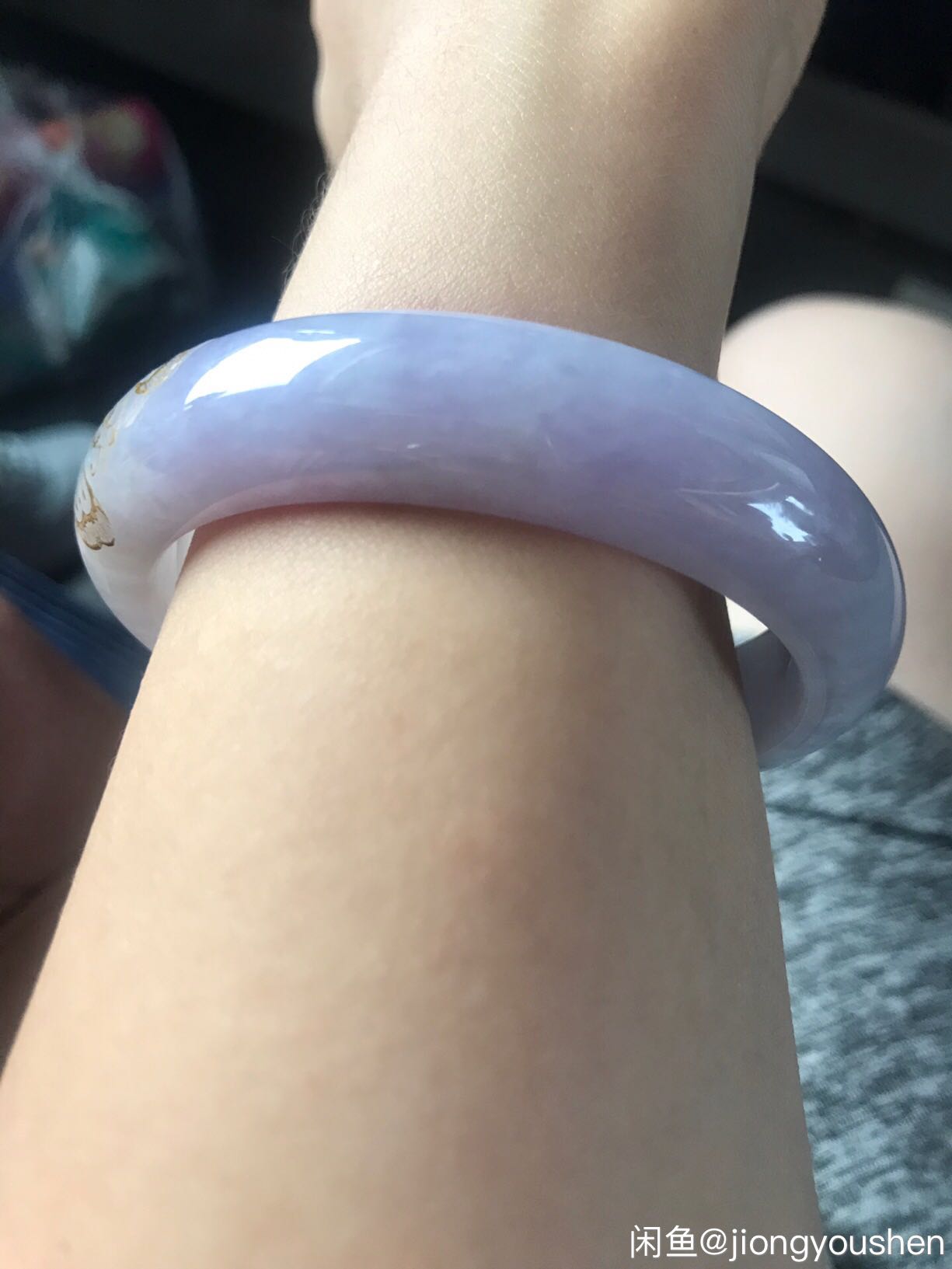 56圈口紫色翡翠镯,天然,a,只有半条纵向不扣纹瑕疵,2000米