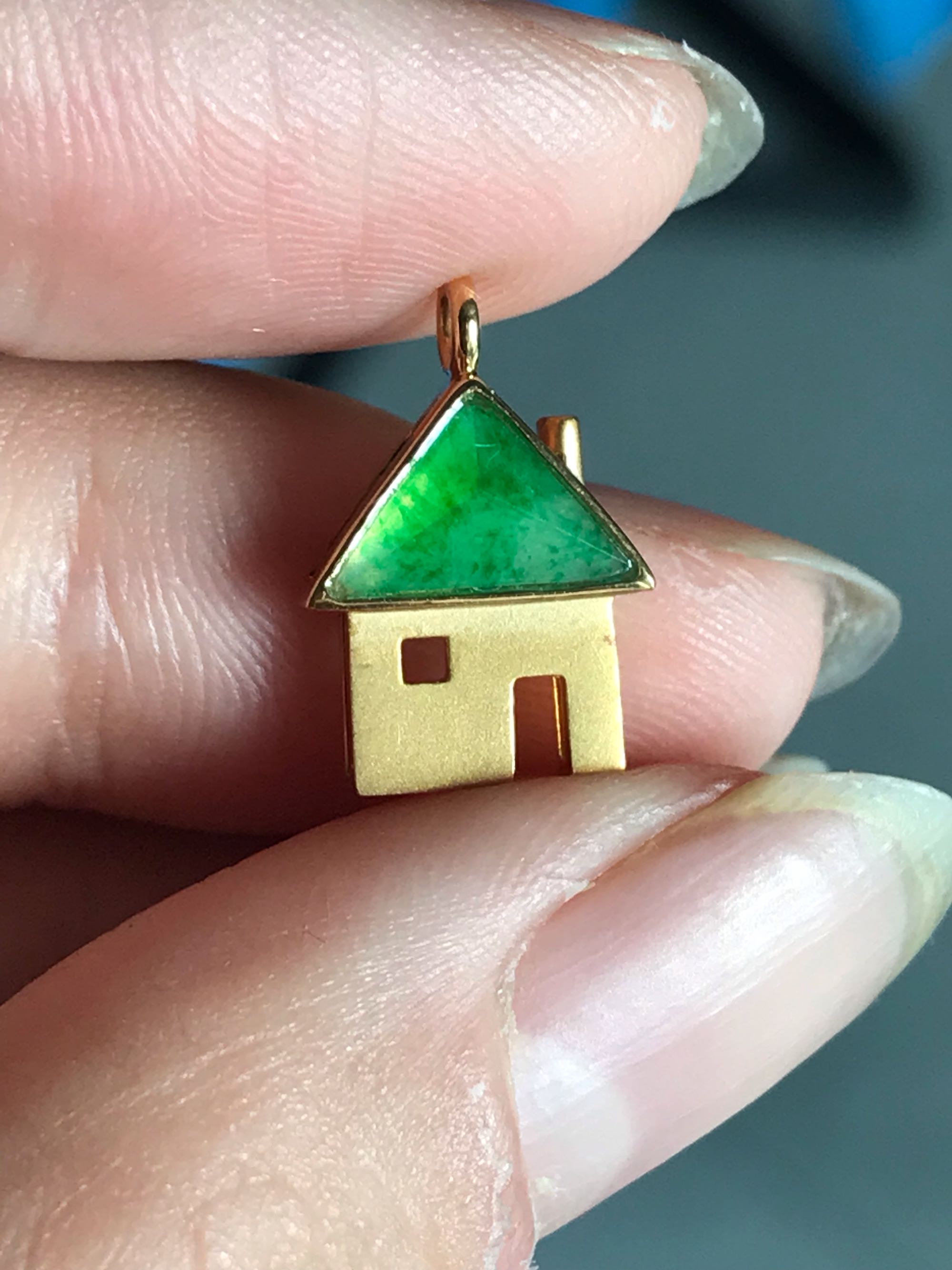 18k金镶翡翠冰阳绿小可爱,1300米,金子2克多,实物颜色就是这么绿,阳光下还能更绿,无证包a
