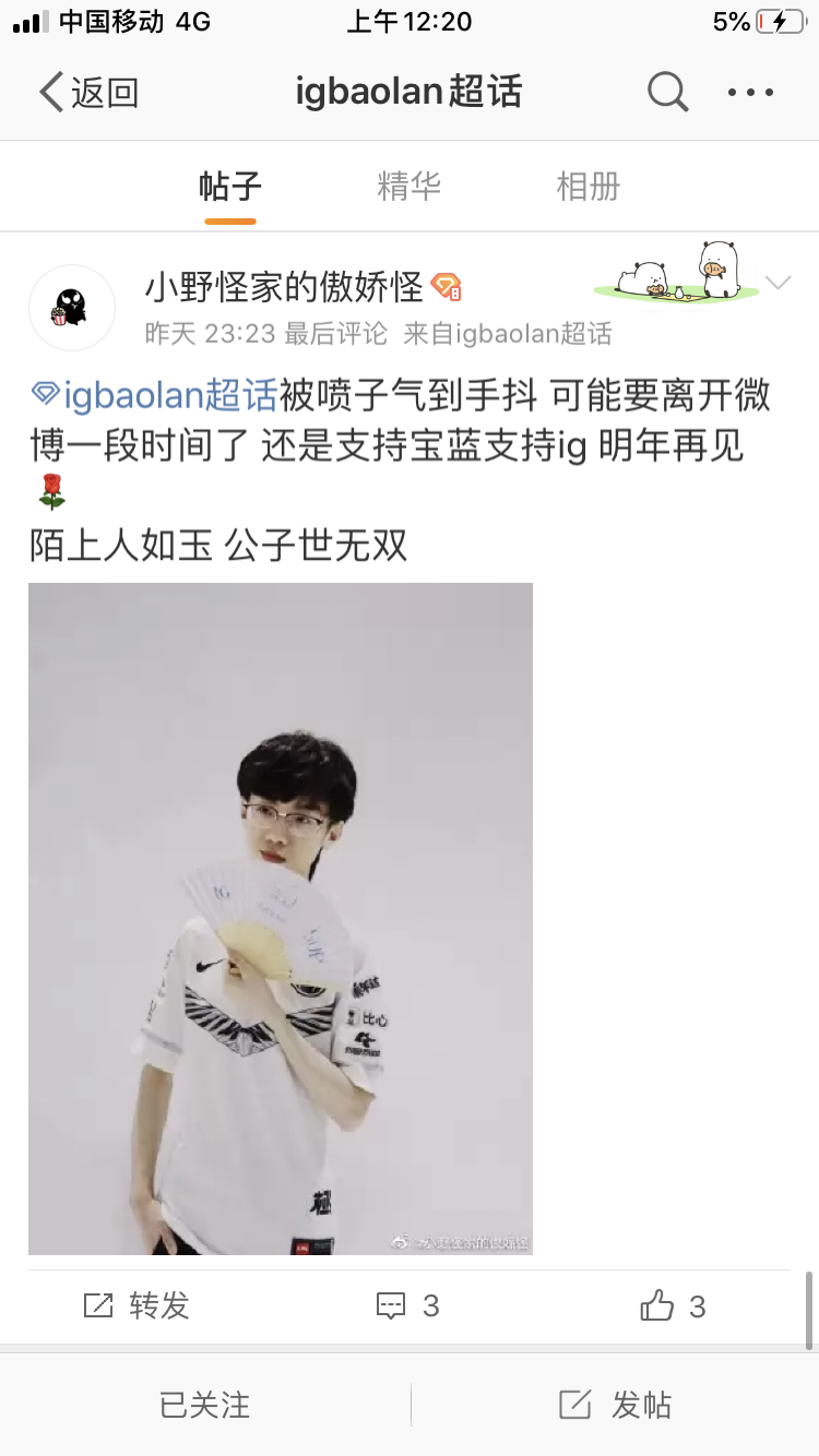 妥协留他亲儿子宝蓝,那我祝ig原地爆炸,3c索性就都离开ig吧。
