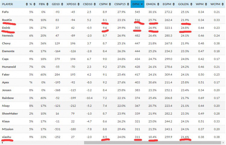 九楼还洗呢,rookie吃21.9经济打25的伤害占比,分均516。你小虎311分均,18的占比,打个倒数第一中单的表现,还有脸甩锅给别人噢。小虎有c过一届世界赛?年年拉垮