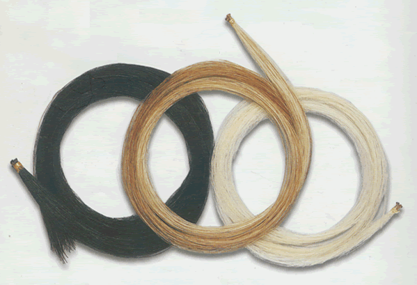 弓毛,应该是白马尾巴毛,有自然光泽,手感好,断口会变形。而低档的弓毛则是仿马尾毛(合成丝),无自然光泽,手感差,断口如刀切。注意,弓毛的安装应稍紧,以运弓时弓毛不触碰弓杆为原则。据说,弓毛越松,琴音越柔;反之,偏噪。