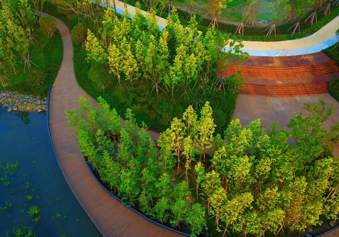 绿意葱茏间波纹形广场“身姿妖娆”