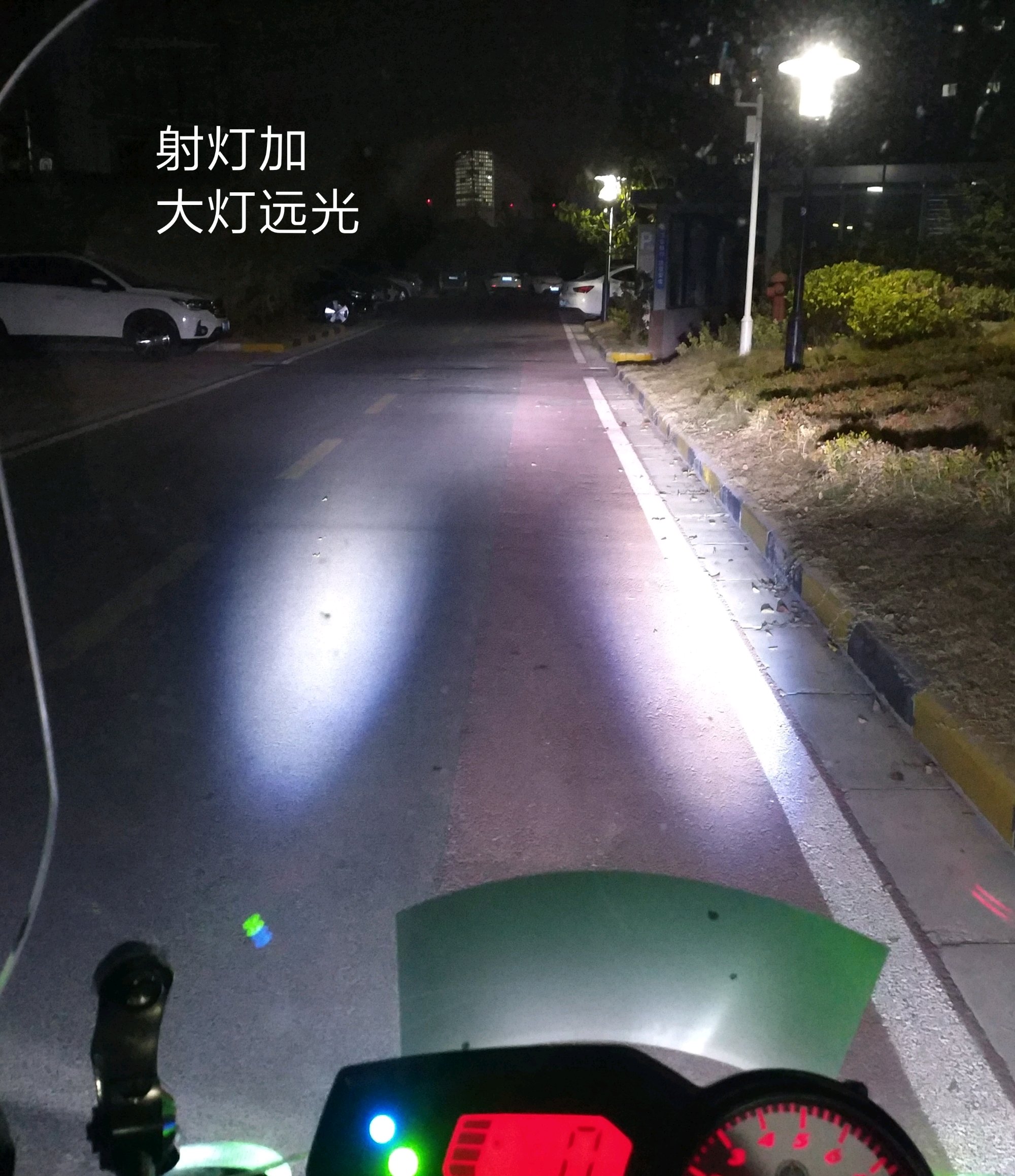 近光还凑合,调远一点啥都看不见。 还是建议装功率大点的射灯。