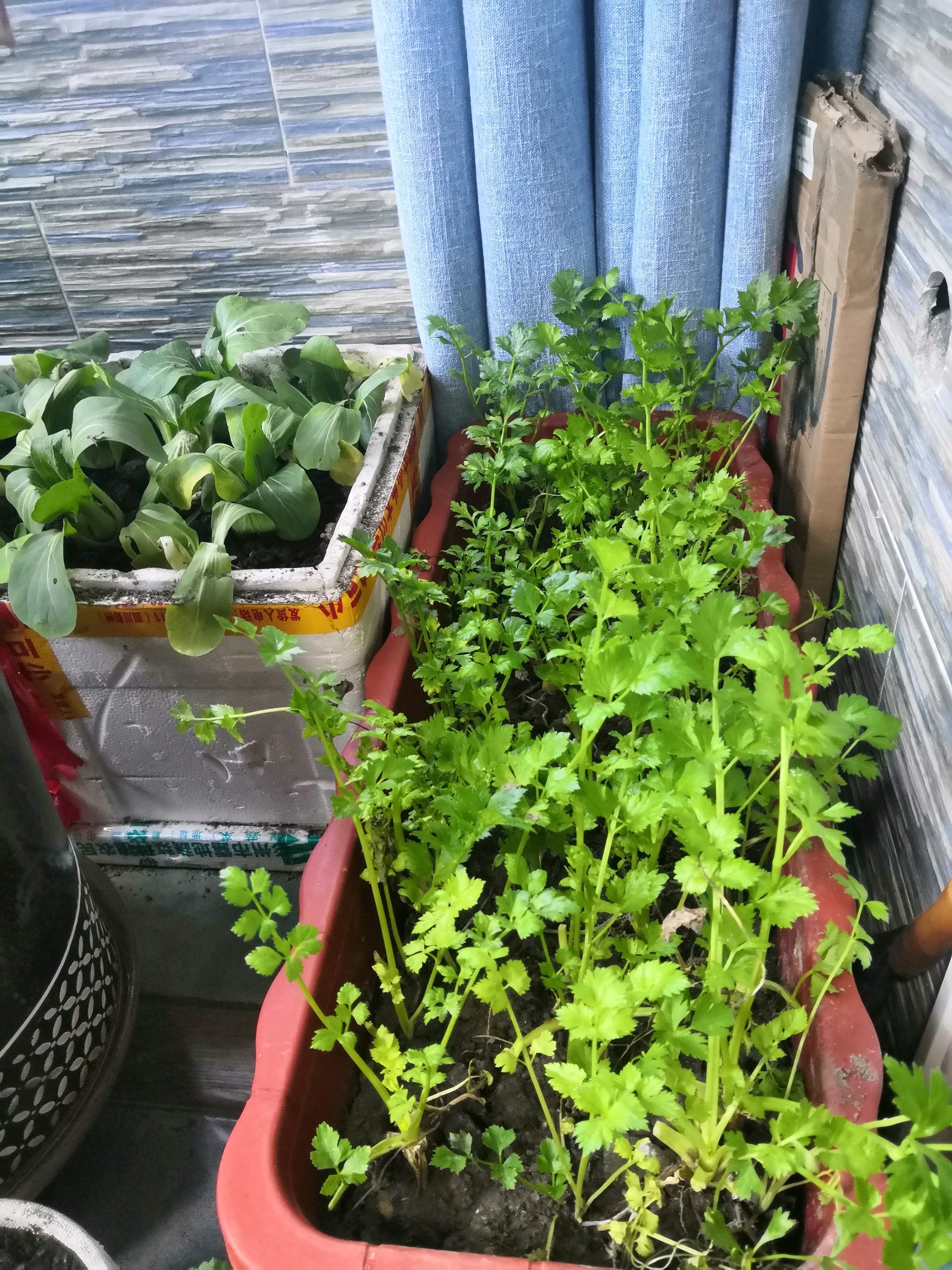 移植了几盆芹菜,估计能够吃上