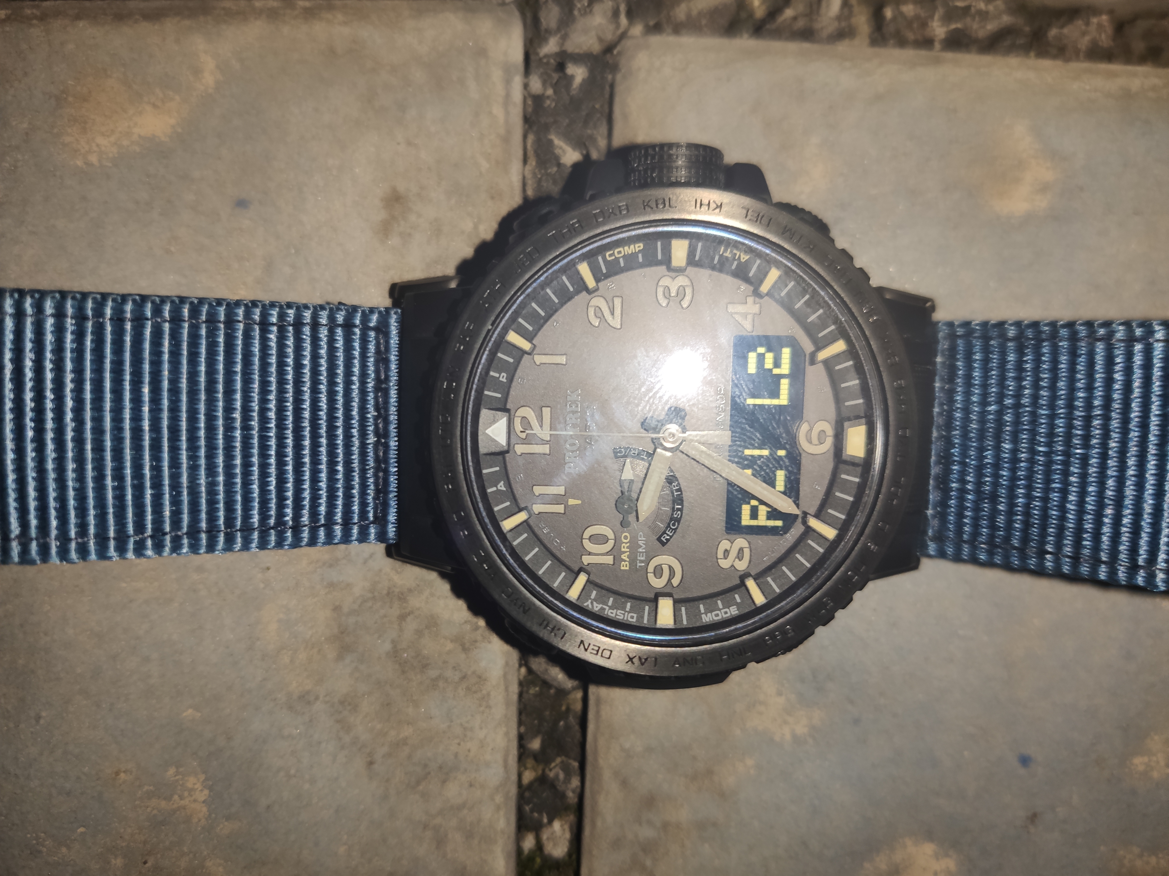 本来也打算入这个 主要看中蓝宝石玻璃 后来发现这个比其余型号的PRW50重多了 估计就重在玻璃和表带上 就选择的PRW50 2A