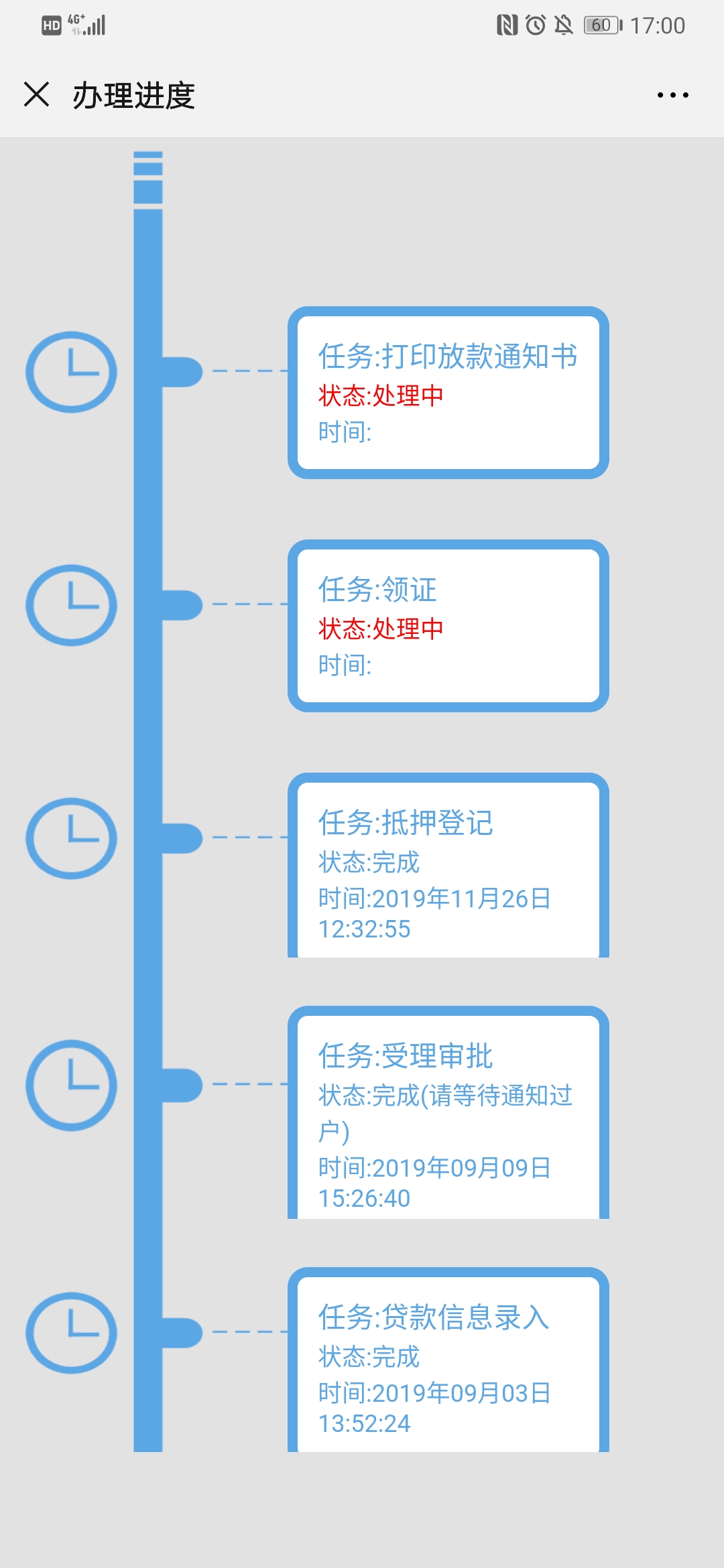 我看了下我的历史记录,从贷款信息入录到档案室归档用了3个月。。。