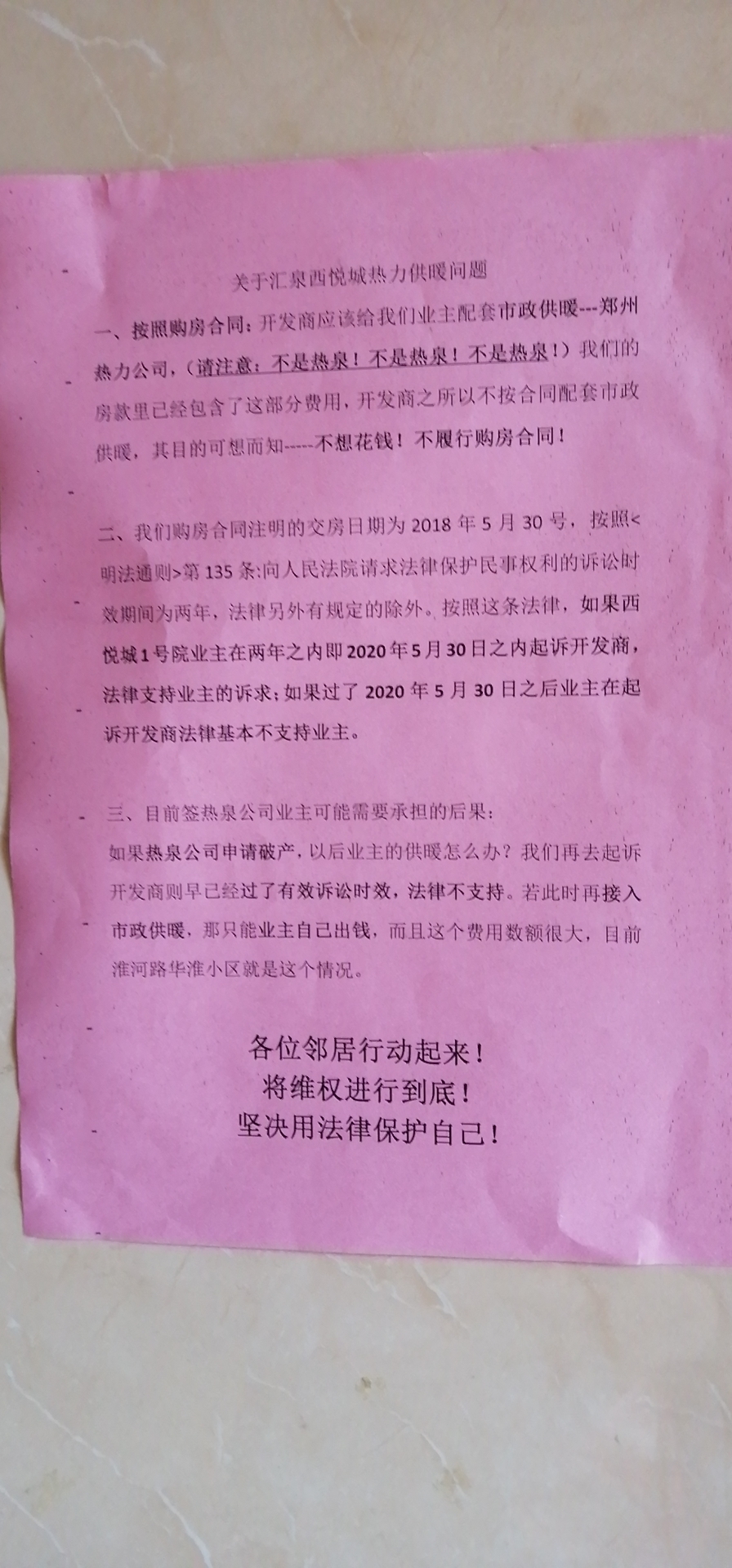 拒绝移交暖气到市政热力公司,而私自成立郑州热泉能源公司----->汇泉独资公司,购买热源转卖给全体业主 ,