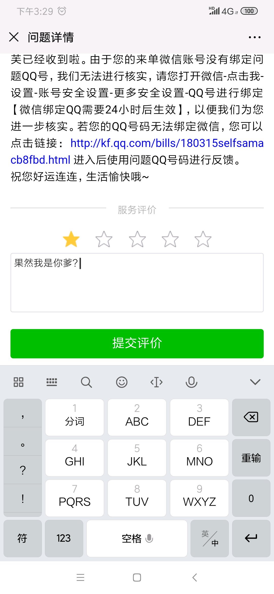 第一次回复我说要回答宠物名字 还有丢失时间 这个我没截图 第二三四次就一直说要绑定关联QQ 我早就绑定了 直到最后我截图了才改口