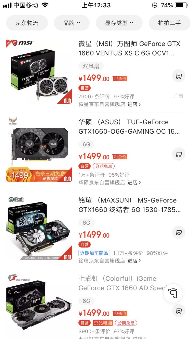 索泰1660s 毁灭者,1599 某东自营,plus还能领50的卷。。。