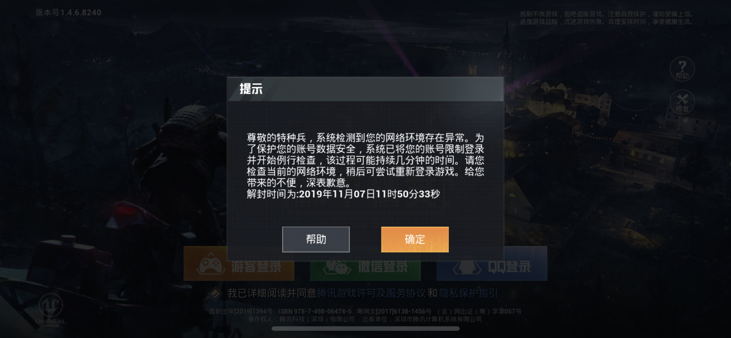 刚开始钢枪就突然蹦出来什么什么异常,再登录就这样了,什么情况