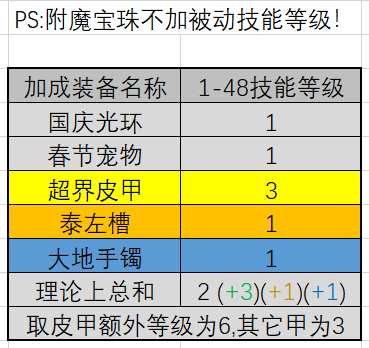 先说说计算方法,这次各职业加强的都是1-48的被动。国服特色国庆光环和宠物各提升一级,万物左槽和大地手镯各1级,但考虑到最终毕业时和没升级普雷前,万物左槽和大地手镯不会共从。所以计算时只选其中的一个,当然先升级大地左槽的提升率要比我计算的结果略高。