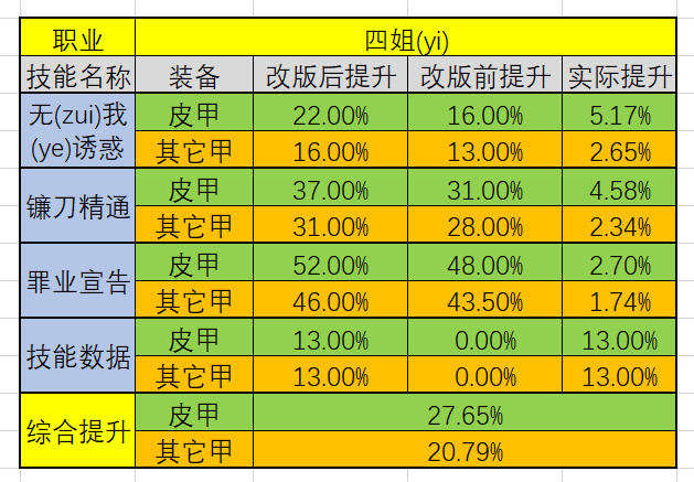 关于11.14版本国服特色加强的各职业的提升率