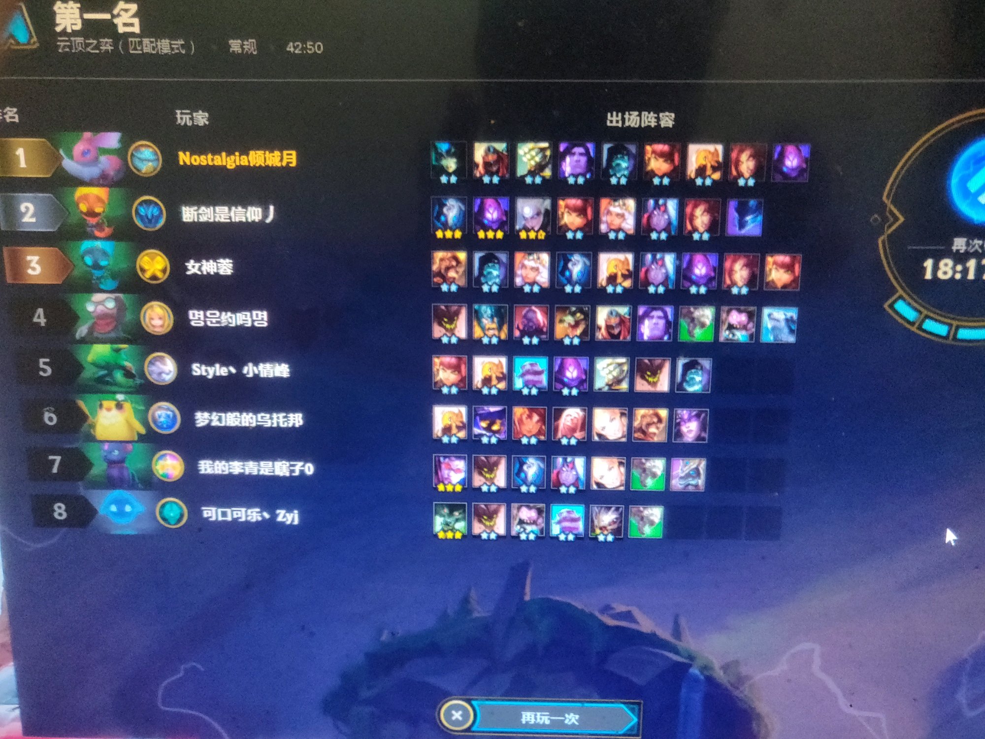 今天一直玩这个阵容,经常满血吃鸡。我看很快就会被削弱,你们快