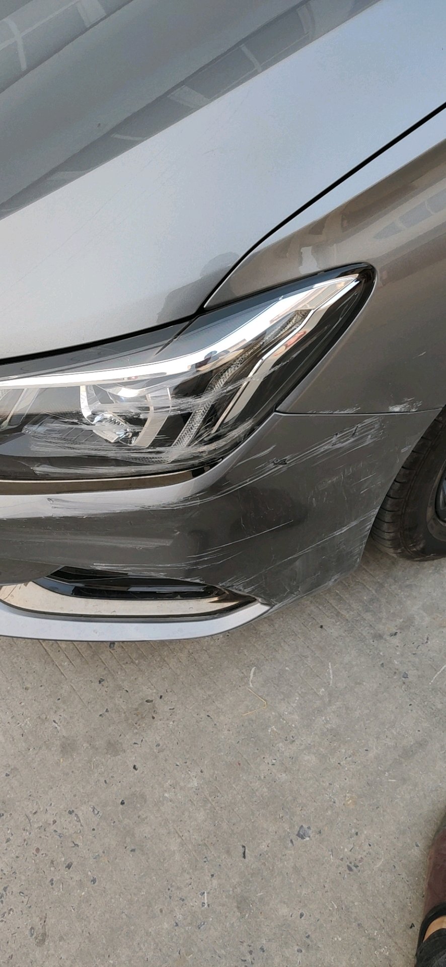 切,我提车4小时不到就一血了,没有心疼,也没啥好心疼的,车是白色的,后来随便弄了点白漆涂了下