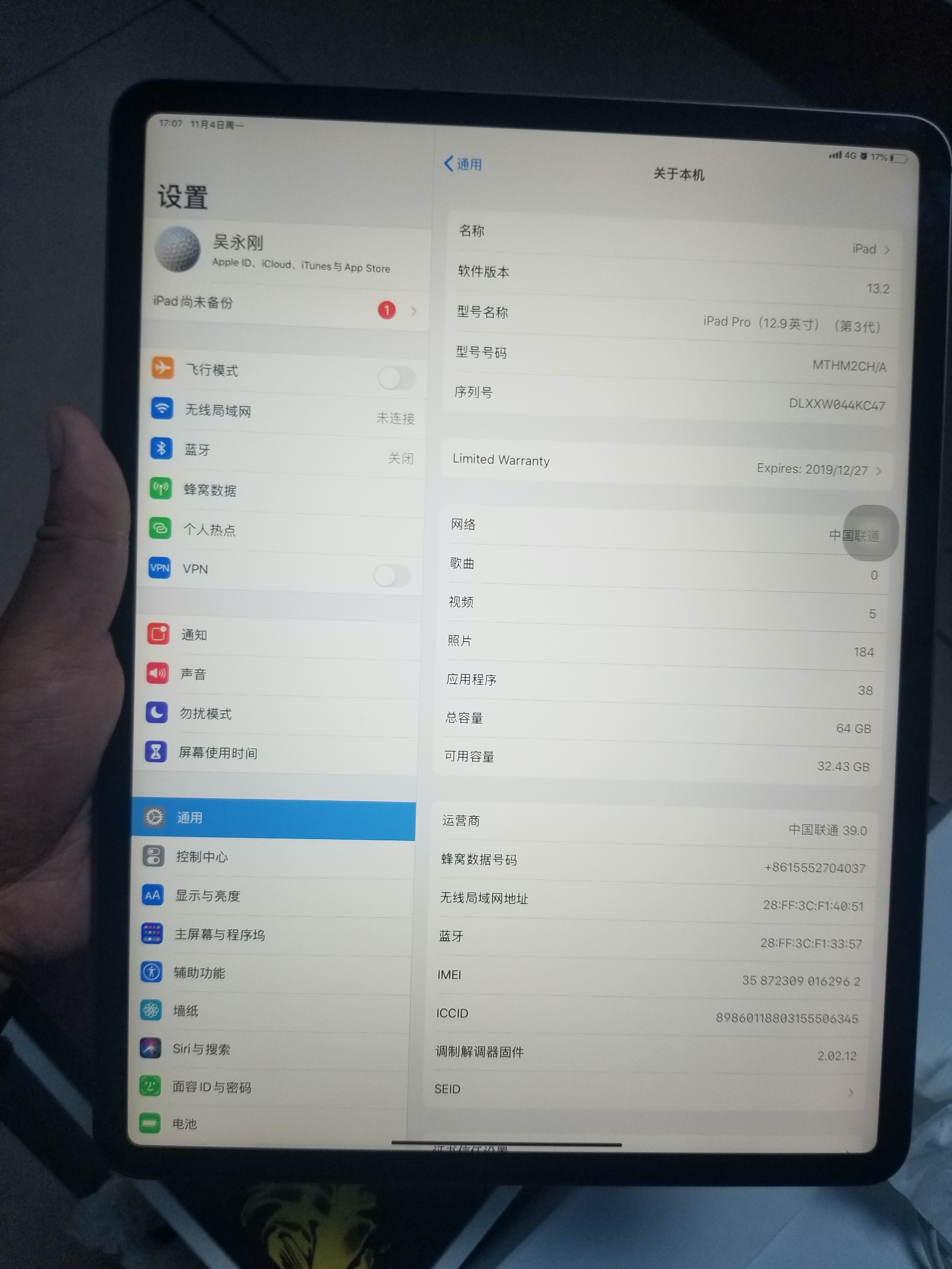 2019.12.29购于上海思明直营店 12.9寸 64g版本 三代 蜂窝,箱子配件发票齐全。