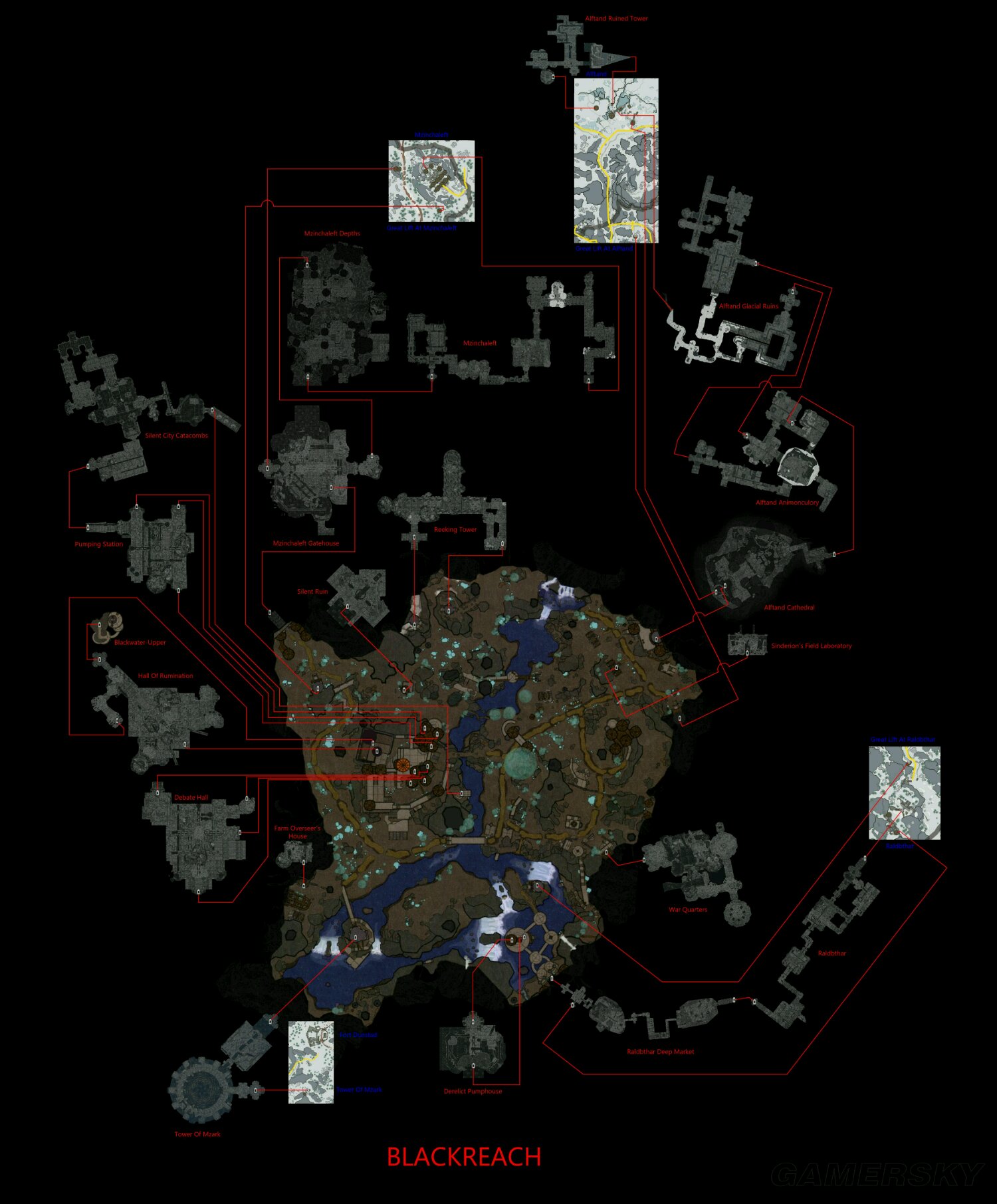 这个地方是锻莫人的居住处,你在黑降能找到上古卷轴,其实上黑降是类似于研究所的一个地方,雪精灵以前也算高等精灵类型的物种,为了躲避战乱所以寻求锻莫人的庇护,但锻莫人奴役了他们,雪精灵是退化的种族。这个地方外围是类似科学家的居住区,里面感觉是研究基地,扎克塔是中心,人造太阳在中间是为了照亮广场,这整个地下建筑的辉煌程度能和马卡斯城相媲美。